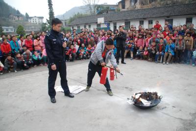 3月月28日,巴东县金果坪乡泗井水小学的学生正在消防民警的指导下使用灭火器扑灭初起火灾。当日,在全国中小学生安全教育日来临之际,该乡综治办组织安监、公安、中心学校走进边远的泗井水小学,组织400名小学师生和家长参加消防逃生演练和正确使用灭火器具的活动,实实在在地让师生、家长过足了“消防瘾”,通过实战提升了师生的安全意识与避险能力。