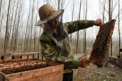 房县养蜂专业户传艺他人致富 3月29日,房县养蜂专业户任高柱在军店镇何家村检查蜂房。付坤与同乡任高柱合伙经营密蜂160余群,年产蜂密、蜂王浆2万多斤,实现收入近30万元。他俩致富后帮带本乡、神农架、竹山、郧县等周边县市区养蜂121户。图二:任高柱在检查蜂房 本报视界网 张启龙 唐雪松 摄 湖北房县水务局 张启龙 邮编:442100 电话:0719-3247077