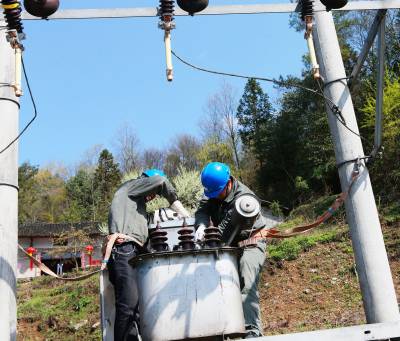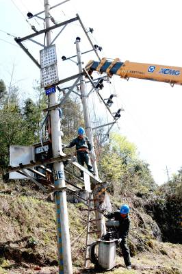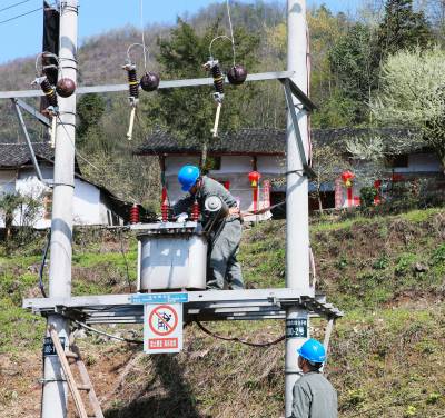 3月29日,阳光明媚,花香春溢。为了保春耕、春茶加工用电,国网宣恩县供电公司员工正在10千伏长土线空木树台区更换配电变压器。 近年来,随着农村经济的迅速增长,现有的供电设备容量不能满足当前客户用电需求,农村供电网络卡口和低电压问题日益突显,在开展党的群众路线教育实践活动中,该公司将着实解决供电网络卡口和低电压问题纳入首要议事日程,分项分层逐级落实。为确保各项春耕农作、春茶采摘和加工可靠用电,该公司迅速启动技改大修项目,解决农村用电卡口和低电压难题。