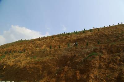 张湾区生态修复规划168个图斑,3800亩山地,计划投资1.5亿元启动裸露山体治理工程。绿化工程设计采取客土喷播、植树造林等方式,对工业园、汉江物流园、生物医药园和张湾辖区内的“福银”高速公路张湾段、“十白”高速公路张湾段、“郧十”一级路张湾段、316国道、209国道等裸露山体进行统一绿化,着力改善辖区生态环境。截止目前,生态修复工程已全面完成。共计投资1.5亿元,绿化园区公路3万米,客土喷播草籽3800亩,铺设草皮10万平方米,植树造林134万株。(图为3月31日十堰市工业新区后山绿化工人们正在给喷客土播种草籽的地方浇水)