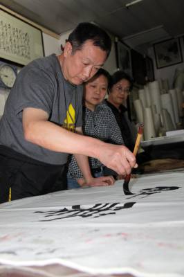 2014年3月31日,军旅书法家刘松林自河南郑州到湖北云梦献艺,为云梦书法爱好者传授书法技艺。刘松林曾任解放军某部政治委员,河南省硬笔书法学会副会长;中国书法家协会、河南省书法家协会会员,中国书法艺术研究院研究员。1972年开始学习书法。先后得到黄松涛、张海、桑凡、李刚田等诸先生的指点和教诲。其书法作品参加全国、全军、省市展览近30次。1986年、1999年分别在武汉、郑州两地举办个人作品展。参加硬、软笔书法大赛、大展等获金奖9次、银奖19次、铜奖33次。作品入选30余本专业作品集,先后在近百家报刊发表文章、作品、题字2000余篇(幅);先后被《解放军报》、《解放军画报》、《香港•华夏风情》、《河南日报》、《河南电视台》、《青少年书法》、《目标》、《中州今古》等报刊专栏、专题介绍28次。出版《古今赠言集锦》、《小学生钢笔字帖》、《刘松林书法作品集》等六本作品集。本报视界网 陈保忠 摄