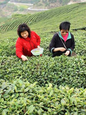竹山开心茶园吸引千余下岗女工上山采茶