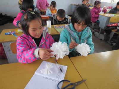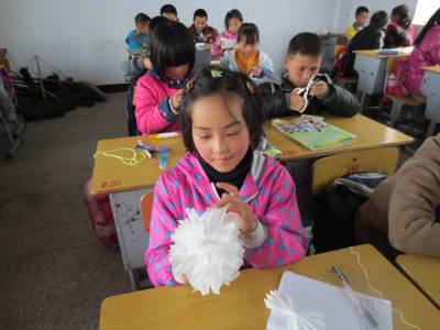 4月1日,鹤峰县走马镇白果小学学生亲手制作小白花。一张白纸,一把剪刀,一根细线,经过一双双灵巧的小手制作出朵朵白花,虽算不上精美,但大家为能戴着自制的小白花去祭奠先烈感到更有意义。 时值清明节来临之际,该县各学校积极响应由中央文明办、教育部、共青团中央、全国妇联等组织的 “绿色清明节”活动。利用宣传栏、国旗下的讲话、主题班会等形式加强宣传,通过网上祭英烈、扫墓、献花等活动,倡导文明祭祀,过健康、文明、绿色、低碳的清明节。 (汪正玺 雷丽)
