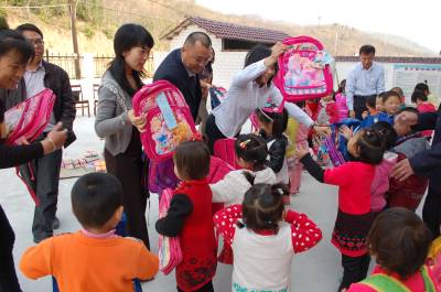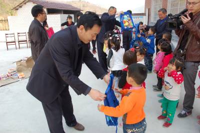 4月2日,麻城市广播电影电视局编辑、记者向该市盐田河镇三星中心小学茶铺村教学点的留守儿童赠送书包、彩笔和儿童书籍等学习用品。为丰富党的群众路线教育活动载体,该局开展了“走基层•看春耕”主题活动。当天,该局还为盐田河镇蔡家山村贫困户送去化肥等春耕生产物资。据了解,这个主题活动将持续到5月份底。本报视界网 戴江红 摄