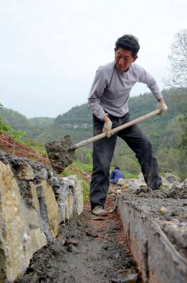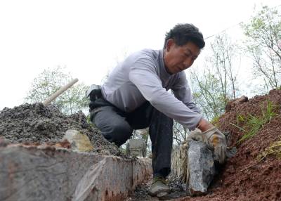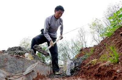立行立改惠民生 4月2日,恩施市舞阳坝街道办事处阳鹊坝村,工人们正在加紧整修白甲沟公路边沟。