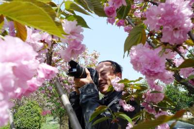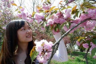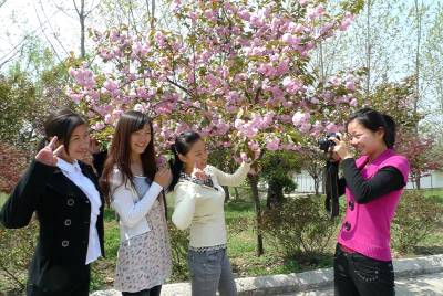 2010年4月8日,几名女青年正在盛开的樱花园里合影留念。随着气温的升高,南漳县的山乡大地鲜花盛开、嫩绿发芽,到处呈现出春的美景。一些户外爱好者和市民们纷纷借着春光明媚的时机走出家门,感受春的气息,放飞美好心情,留下春天美好的瞬间。