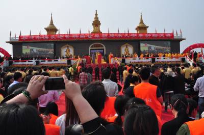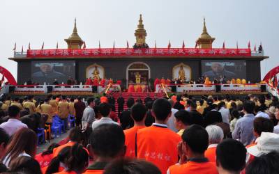 清明节当天,武汉新洲区仓埠街报祖寺迎回禅宗泰斗——本焕长老舍利。来自东南亚、国内多个省份和港澳地区的近2万群众,赶到报祖寺的菩提广场,争睹在此举行的迎请本焕长老舍利回仓埠祖庭供奉祈福大典。