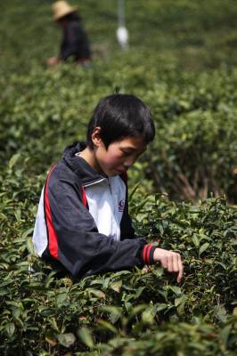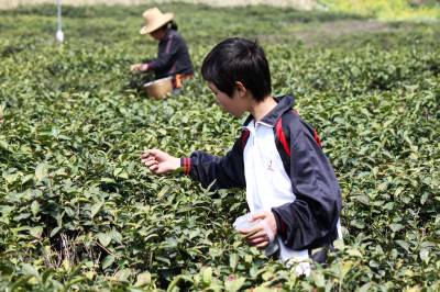 伴着茶香度假日 4月7日,竹溪县水坪镇延坝中学学生蔡金辉在茶园采摘茶叶。清明小长假期间,竹溪县中小学生利用放假时间纷纷到茶园采茶,进行社会体验活动,同时挣点零用钱,伴着茶香度过一个有意义的假日。