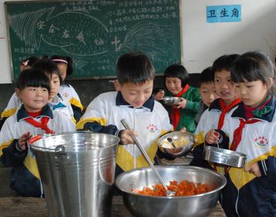 自助打餐不浪费 4月4日中午,来凤县三胡乡讨火车小学学生在教室里自助打饭菜,开心吃午餐。 2012年,该校在教育局的支持下,建起了“希望厨房”,学生从此吃上了营养午餐,结束了一顿早餐管到放学的历史。从去年秋季学期开始,学校改变打餐模式,由教师打餐变为学生自助打餐,既培养了学生自理能力,又减少了就餐时的浪费,午餐过后,教室里干干净净,找不到一点剩菜剩饭。 本报视界网唐孔琪摄