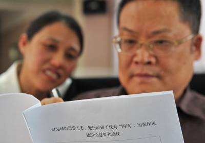 人大代表评领导“四风”效果好 4月8日,湖北省宜都市陆城街办的人大代表对街道党工委和行政领导班子成员的作风建设情况进行现场打分。当天,该市陆城街道办事处组织市人大代表对街道党工委和处行政领导在反对“四风”和作风建设方面提出意见和建议,参会的人大代表对办事处的20名领导面对面地进行了评议,起到良好效果。 湖北省宜都市委宣传部:曹礼达摄 电话:13872539969 邮编:443300
