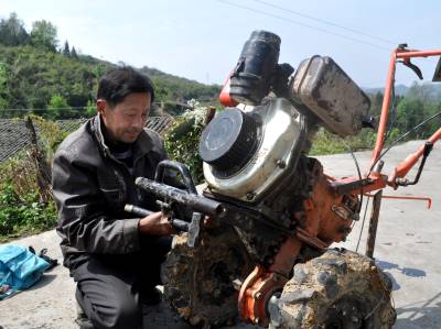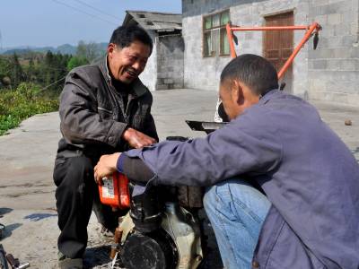 杨志祥:走村窜寨修农具 4月8日,来凤县翔凤镇三光坪社区66岁的农具修理工杨志祥,在革勒车镇大地龙村为村民修理耕整机。杨志祥从事农(机)具修理近30年,邻近的湖南龙山县、湖北宣恩县及来凤县8个乡镇都是他的服务区,年修理各类农机具400多台(套),成为来凤以农机修理为主业的第一人。 本报视界网 姚丙然 来凤县革勒车镇文化服务中心 电话:13997799385
