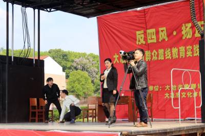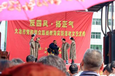 4月8日,大冶市灵乡镇党员干部在政府广场观看“反四风、扬正气”教育实践活动文艺演出。此次活动由大冶市群组办、大冶市文化体育局联合举办,充分利用流动舞台,10天内将反应四风问题,形式多样的文艺表演送到14个乡镇场,丰富了学习教育形式,扎实推进了教育实践活动。