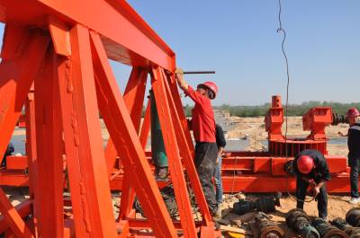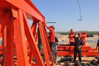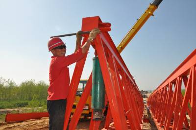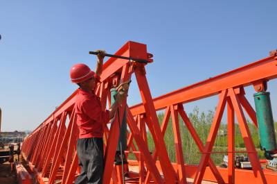 4月9日,麻城市宋铁(宋埠至铁门)二桥施工现场工人加紧架设桥梁装机。宋铁(宋埠至铁门)二桥是宋铁白(宋埠至铁门至白果)公路控制性工程,全长397米,桥面宽12米,工程自去年8月份开工建设以来,该市交通公路部门抢抓晴好天气,科学合理安排工期,经过6个多月的艰苦鏖战,目前所有桥墩已经全部完工,占桥梁工程总量的51%,整个桥梁计划今年年底竣工。本报视界网通讯员 徐友才 王善洲 作者通联:湖北省麻城市交通运输局 徐友才 邮编438300