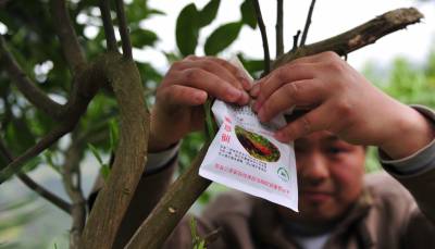 ”以螨治螨”是目前柑橘生产应用较成功的生物防治新技术之一,运用捕食螨防治害螨可替代化学农药防治,能大幅度减少农药使用量及农产品的农药残留量。当天,该中心农技人员分赴全镇柑橘基地,指导农民为万亩柑橘树挂捕食螨。视界网杨顺丕张华摄