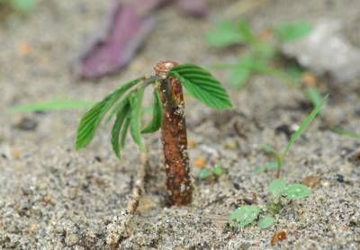 4月9日,在湖北襄樊市林业科学研究所,科研人员正观察濒临灭绝的边缘的小勾儿茶引种生长状况,目前,他们引种的64株小勾儿茶成活了34株,扦插繁育的小勾儿茶已经开始发芽,该所的小勾儿茶是目前国内存种最多的地方。目前,我国共在湖北五峰、竹溪、房县、保康、神农架发现小勾儿茶31株。其中,在保康县五道峡自然保护区麻坑桂树冲发现的小勾儿茶有27株,这是目前发现小勾儿茶最多的地区。2004年8月22日,由中科院武汉植物研究所、湖北省野生动植物保护总站、华中师范大学生命科学学院的12名专家、教授组成的五道峡自然保护区联合科考队在海拔1200米的保康县五道峡自然保护区麻坑桂树冲的一片落叶、阔叶混交林里,发现了27株小勾儿茶。为了开展小勾儿茶的研究工作,保康县于2005年采集到1006颗小勾儿茶种子,其中,120颗种子由保康县林业局的李洪喜就地播种,186颗种子由保康县林业局进行种子发芽率、种子生命力实验,700颗种子由中科院武汉植物园进行异地播种和实验室播种。保康县人工就地播种成功84株小勾儿茶幼苗,84株小勾儿茶幼苗分别种植在隆中植物园和武汉湖北生态工程职业技术学院。襄樊市林业科学研究所引种濒危珍稀植物小勾儿茶获得成功,引种的64株小勾儿茶成活了34株,最大的幼苗高2.45米、地径0.025米。同时,襄樊市林业科研所也成功引种培育成功水青树、光叶槭、大果青杄,巴东木櫣、三峡槭、茶条槭等多种濒危珍稀植物,种类接近50种,已经成为大型珍稀植物引种基地。