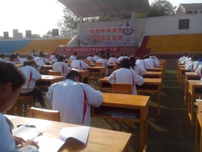 图片说明:让书法伴随一生 4月9日,安陆一中首届规范汉字现场书写大赛在该校大操场举行,吸引该校近3000名学生参加。随着社会的发展,便捷的输入工具取代了传统的手写,人们对于汉字书写的规范美观越来越不重视,甚至出现了“提笔忘字”的情形,安陆一中首次举办规范汉字书写大赛,其目的是引导广大学生养成良好的写字习惯,培养对文字的崇敬与热爱,从而伴随着他一生。 (通讯员 黄爱东 黄想明) 作者通联:安陆市委宣传部 138863555004
