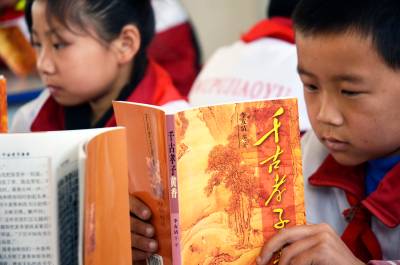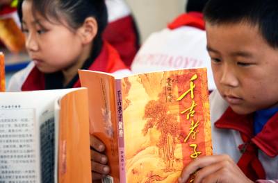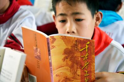 3日,云梦县吴铺镇中心小学的学生在阅读《千古孝子黄香》。黄香扇枕温衾,以孝子、贤臣驰名于世,他的孝行影响着一代又一代云梦人。近年来,当地教育系统在中小学广泛开展“学习黄香”系列活动。通过组织学生阅读《千古孝子黄香》、《孝子贤臣黄香》连环画,诵读《弟子规》、《三字经》,观看以黄香故事为主要内容的动画片、木偶戏、楚剧等视频资料,让学生们从小了解黄香,体会孝亲感恩,进而引导学生践行孝行,争当“小孝星”。 本报视界网 王云清 摄