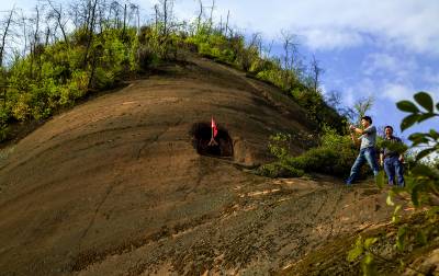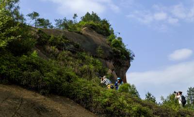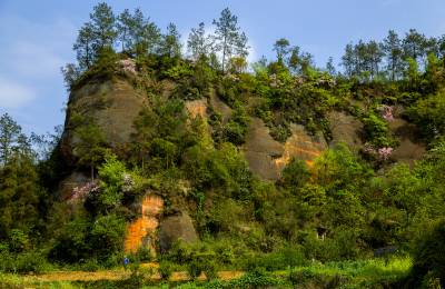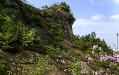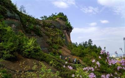 2014年4月9日,一些摄影爱好者,纷纷来到规划中的恩施州城月亮岩丹霞地质森林公园的丹霞山上,兴致勃勃地拍摄丹霞红杜鹃。 当日,艳阳高照,风和日丽。恩施州城周围数不尽的丹霞体,在和煦阳光的照射下恰似深闺少女,悄悄地展露出了一张张羞涩红润的脸蛋,向她的主人和游人示好,而这些丹霞山上特有的粉红杜鹃花更是竞相绽放,将丹霞山体装点得格外漂亮。