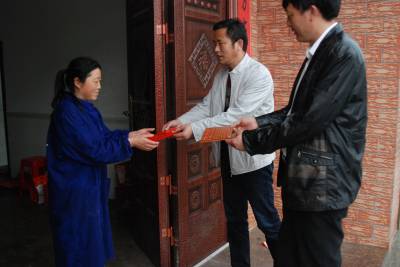 上门给十星期级文明户送红包