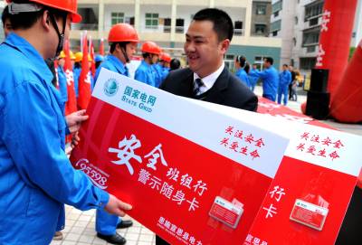 4月8日,宣恩县电力公司将印制有安全十条禁令、施工现场”三防十要”反事故措施的”安全警示随身卡”发放给各班组长,班组长再将卡发放给每一位员工。拿到卡的员工赶紧和同事一起学习,还把女儿拉到身边,给她讲解安全知识。该公司通过开展安全警示宣传图片展、发放安全随身警示卡、深入工作一线慰问、举办安全知识竞赛、签订”亲情助安”互保协议书、新老员工互帮互带等亲情化、人性化的工作,大力实施”亲情助安”活动,把安全宣传教育阵地延伸到基层班组、家庭,形成浓郁的安全亲情文化,构筑了”单位、班组、员工、家属”四位一体的安全互保”大安全”防线。(视界网签约摄影师田丹、杨志英)