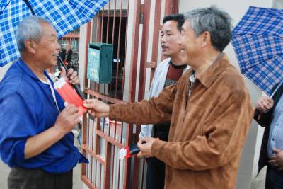 冒雨上门给十星级文明户送红包