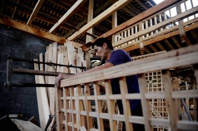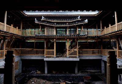 4月12日,恩施市芭蕉侗族乡一座侗族民居正在建设。