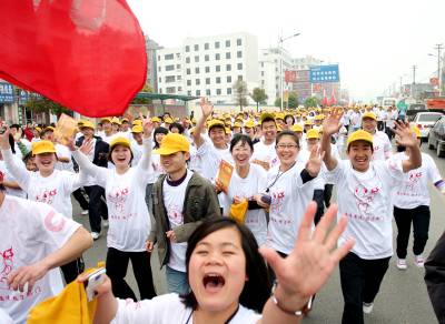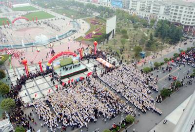 9日,”迎省会·观油菜花”万人长跑活动暨荆门市首届职工文化节在天鹅广场开幕。一声枪响后,由各市直各单位、学校组成的万人长跑队拉开了活动序幕。她们用激情的奔路,向省运会招手呼唤。荆门晚报记者郑波摄