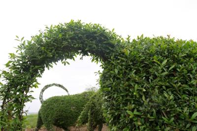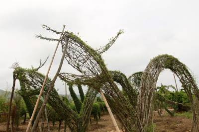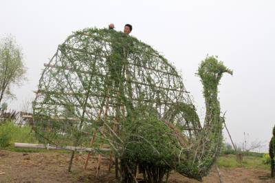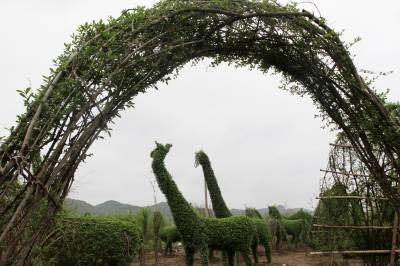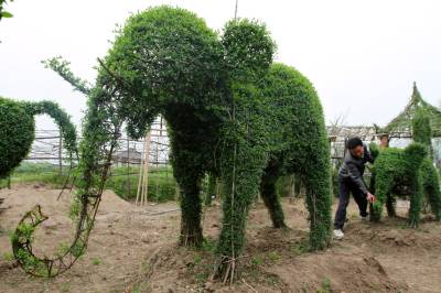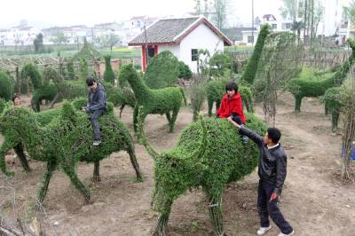 房县植物“动物园”的动物,用钢筋支撑骨架,然后选用栽植的四季常青女贞子植物,人工编制成各种各样动感十足的动物。毎年,向清贵要对动物们的“毛”进行修剪,直到长成羽翼丰满,肢体肥硕,活灵活现。