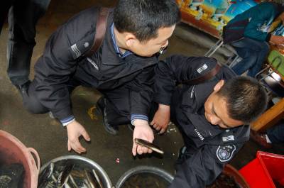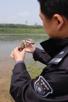 2014年4月14日,云梦县水产部门组织人员,到云梦府河段调查蚶子生存生活情况。蚶子是全国稀有濒临灭绝的淡水贝类。云梦府河段发现大量蚶子群壳后,孝感晚报、楚天都市报、视界网、人民图片、新华网、腾讯网、中国水产养殖网、中国海洋食品网等进行了刊载或转发。云梦县水产部门迅即组织专人沿着府河云梦段进行调查,同时向群众宣传对蚶子的保护措施。本报视界网 陈保忠 摄