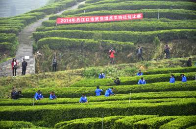 4月13日,丹江口市土关垭镇举行首届“武当道茶”采摘制作比赛及鉴评活动。“武当道茶”是该市农业产业化的一个重要品牌。目前正是春茶茶叶采制和销售关键时期,举办