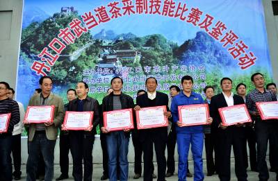 此次活动对于提高武当道茶采制技术水平和产品质量,加大武当道茶品牌宣传和促销力度,促进该市武当道茶产业持续健康发展具有重要的作用。市王清堂等领导到场观看祝贺。本次活动由市茶叶产业协会主办,湖北武当道茶开发有限公司承办。共有10名选手参加现场制作竞赛,30名选手参加采摘竞赛,收到参评茶样25个。经过专家评审组的认真评定,裴常军荣获制茶技能比赛特等奖,王伟、程用超、朱晓琴荣获制茶技能比赛一等奖,陈涛、谢传昌、刘合超、陈传林、王世平、罗自强荣获制茶技能比赛二等奖,吴红梅荣获采茶技能比赛一等奖,田彩霞、肖兴平、艾连英荣获采茶技能比赛二等奖,陈玉林、刘瑞、袁长菊、王定云、叶华、谭成翠荣获采茶技能比赛三等奖,武当道茶公司的仙仁牌洞宾剑等5个茶样获得茶叶鉴评金奖。吕书华13986874537