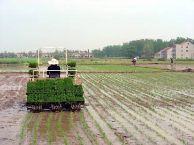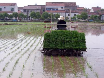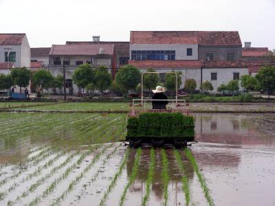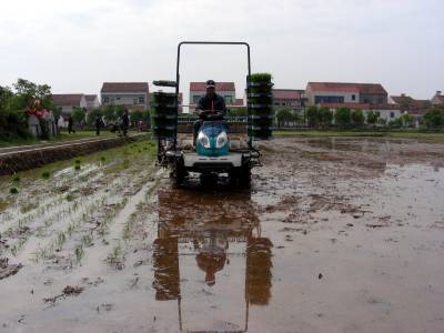 4月14日,黄梅县柏龙农机合作社农机手驾驶插秧机在濯港镇杨柳湖村田间插秧。眼下正是早稻生产时节,该县组织27个农机专业合作社抢时间、赶季节,全力为农民提供整田、插秧等一条龙机械化作业服务,确保水稻丰收。(本报视界网 吴志雄 摄)