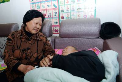 15年来,无论春夏秋冬,曹仕玉就像照顾小孩儿一样,悉心照料着老伴儿的饮食起居。除了每天定时喂水、喂饭、吃药、按摩、换尿片,她还要每天把老伴儿背进背出,时不时将老伴儿送出去晒晒太阳。