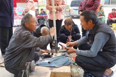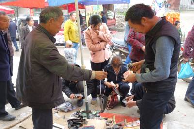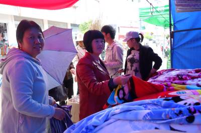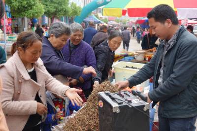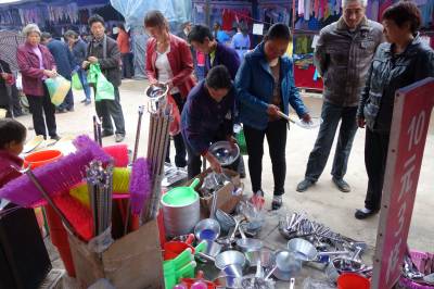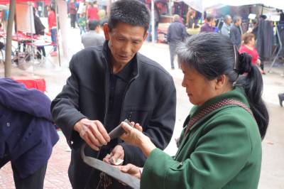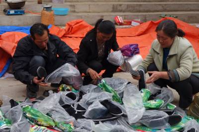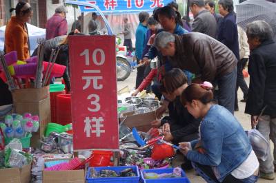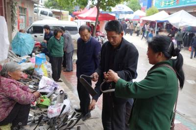 4月14日,湖北省十堰市郧县刘洞镇农民在集镇物资交流会上购物。当日是农历三月十五,湖北省十堰市郧县刘洞镇一年一度的物资交流会现场人如潮涌,农副产品、春耕农具等成为抢手货。 该镇位于鄂、豫、陕三省交界,具有百年传统的“十五物交会”已成为当地规模最大的物资交流盛会。今年的物资交流会共吸引了来自周边乡镇的2000余家客商,日客流量达2万余人。(王升摄)