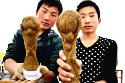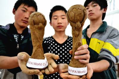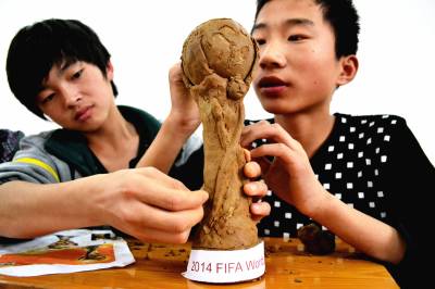 泥塑世界杯 (通讯员 杨显有 李家平) 4月16日,湖北省郧县柳陂镇中学九年级学生在用泥土捏制成代表世界足球最高荣誉的“大力神杯”, 释放中考前的压力。 当日,该校组织即将参加中考的九年级学生用泥土捏制成代表世界足球最高荣誉的世界杯赛奖杯——“大力神杯”形象,并通过了解历届“世界杯”冠军归属和本届世界杯举办地巴西的近况,来释放中考前的紧张情绪和心理压力。 (联系地址:湖北省郧县柳陂镇中心小学 杨显有 13277199605 442532)