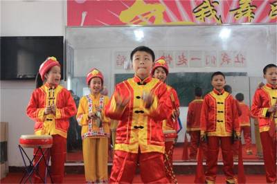 一直以来,在教师姚全银的精指导下,该校学生利用寒暑假时间,进行少儿三棒鼓排练。这些小学生不怕困难,刻苦训练,三棒鼓表演技巧以达到非常熟练程度。