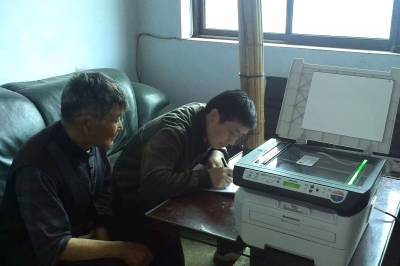 本报讯 4月16日,建始县花坪镇财政所工作人员在82岁退休职工刘兴东家采集社保卡相关信息。 为确保社保卡申领工作有序进行,对于视力不好、听力不灵、腿脚不便的退休老人,花坪财政所专门聘请专职摄像技师、带上复印设备,上门入户为退休老人拍摄白底彩色登记照、复印二代身份证、采集、比对个人身份信息,把“方便”送给退休老人。(本报视界网图片库卢家文摄) 地址:建始县财政局卢家文 电话:13972401505