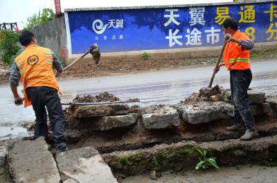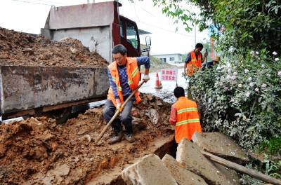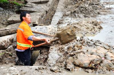 4月17日,恩施市舞阳坝街道办事处七里坪村大湾组,恩施市公路局工人疏通边沟,解决村民家积水问题。 近日,连日阴雨,导致恩鹤公路七里坪大湾段村民家积水,影响到几家农户出行,该办得知这一情况后,联系恩施市公路局,共同研究方案,成立专班,现场整改。自党的群众路线教育实践活动开展以来,采取立行立改方式,解决好涉及该办用水、用电、公路、医疗、养老等民生问题100余件。(本报视界网 王家政摄)