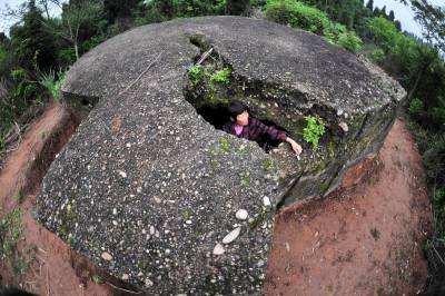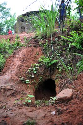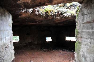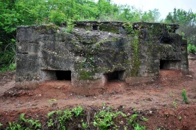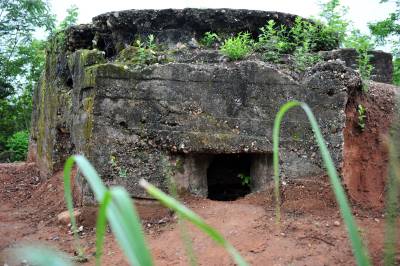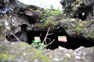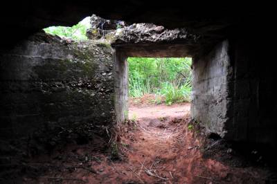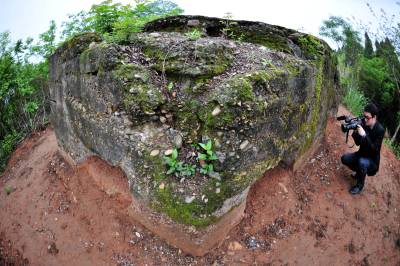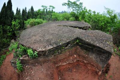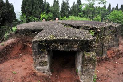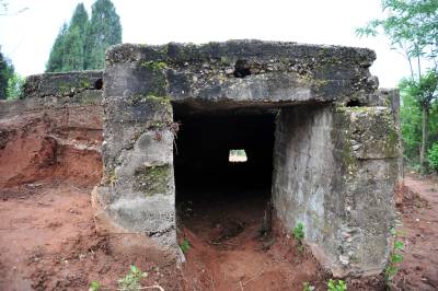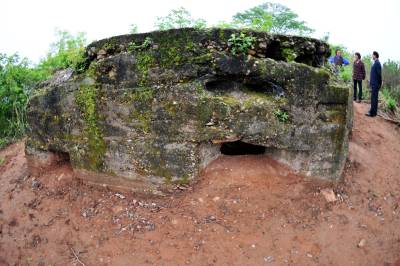 近日,宜昌市夷陵区小溪塔街道仓屋榜村村民在该村寨子包山顶发现了一处日军侵华时修建的碉堡遗迹。该碉堡呈不规则形状,墙体用水泥混凝土制成,足有50CM厚。从碉堡的唯一一个入口进入碉堡,内空高约1.5米,宽两米,长5米,在碉堡四周分布着6个内窄外宽的机枪孔。