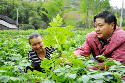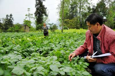 土专家田间问“症” 4月17日,在恩施市红土乡乌鸦坝村茅坝淌组,农技员阮正斌正在面对面地指导村民综合防治洋芋晚疫病。 时下正是马铃薯农作物病虫害爆发的高峰期。马铃薯是全市夏粮主产作物,为了及时搞好农作物综防。该市积极组织农技人员及时深入到田间地块,面对面地教农民识别马铃薯等农作物病虫害的不同症状,讲解不同农药对防治马铃薯病虫害的功效以及防治方法,保证农民对“症”下药,从技术上做好配套跟踪服务,受到当地农民的欢迎。(本报视界网彭绍峰阮正斌摄)