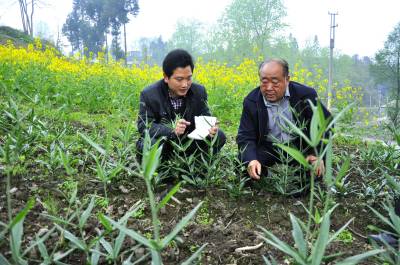 药园“问计”促产业 4月18日,在恩施市红土乡红土溪村帅家垭组,技术员正在村民帅传富的贝母园里征求“药业”发展意见。 自开展党的群众路线教育实践活动以来,该乡充分发挥“华中药库“的自然优势,引导村民发展以紫油厚朴、天麻、贝母、窑归等药材特色产业,优选100多个产业种植大户,培育他们成为产业示范户,在他们的典型带动下,群众参与特色产业结构调整的积极性高,切实带动农民增收。(本报视界网彭绍峰谭风华摄)