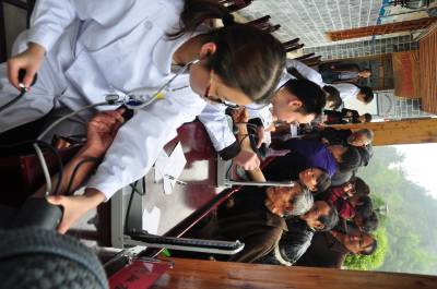 4月15日,咸丰县人民医院15名医护人员深入高乐山镇沙坝村开展党的群众路线教育暨新“三万”惠民义诊活动,为当地村民进行义诊咨询,免费为村民开展测血压、测血糖、心电图等常规检查,主要就常见病、慢性病进行诊断治疗,倡导健康生活方式,引导村民科学就医。本次活动共接诊村民近200人,免费发放价值5000余元药品。 李维君 田景会摄影报道