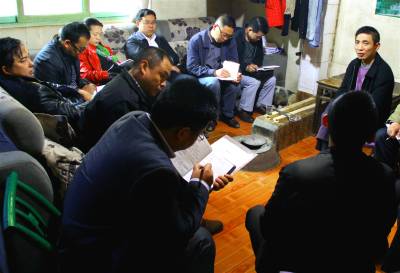 4月17日,宣恩县党员干部在该县长潭河乡两溪河村村民张兴红家中了解生产生活困难。党的群众路线教育实践活动以来,宣恩县积极开展“三进六访”活动,走进偏远地区群众家中,了解生产生活困难,截至目前,该县共走访群众2000余户,为他们解决生产生活难题800多个。(本报视界网 刘友春摄)