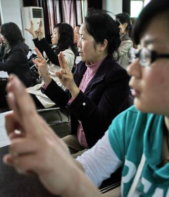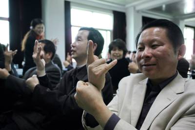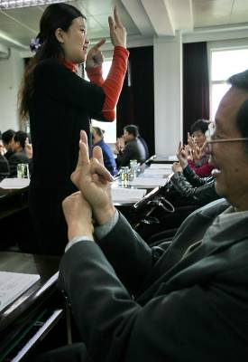 > 残联工作者学手语