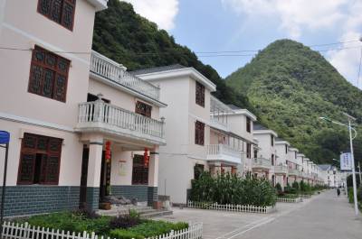 18日,青山绵延、水碧天蓝,绿阴覆盖,宽阔水泥路通组入户,幢幢洋楼依山而建的鹤峰县龙潭村村民住房在山坳里靓丽。