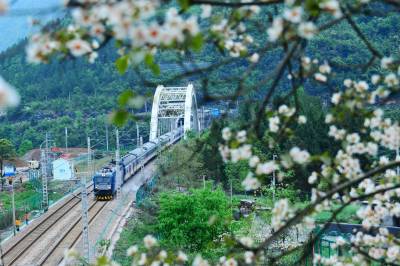 入汛以来,荆门桥工段扎实推进防洪标准化建设,采取多项科学有效措施,全力投入到防洪防汛的主战场,为宜万铁路运输安全提供有力支撑。图为4月17日,一列旅客列车安全通过宜万铁路野三河大桥。