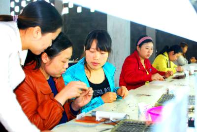 25岁的宋萍是大河镇碧泥湖村人,早年在广东电子厂打工期间,她通过自学钻研和业余培训学习深造,成为公司主要技术骨干。今年3月,宋萍回到家乡后被汇创电子有限公司聘为技术工程师,在她的带动和教授下,已有60多名留守妇女学会了网络滤波器的组装生产。