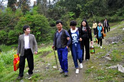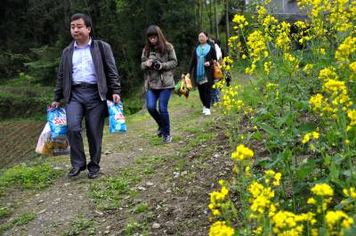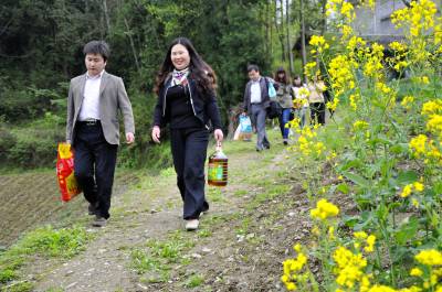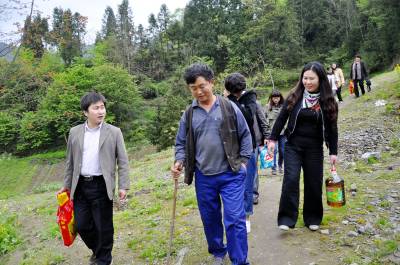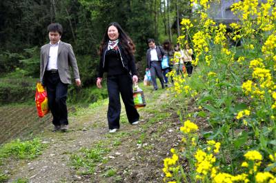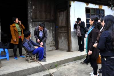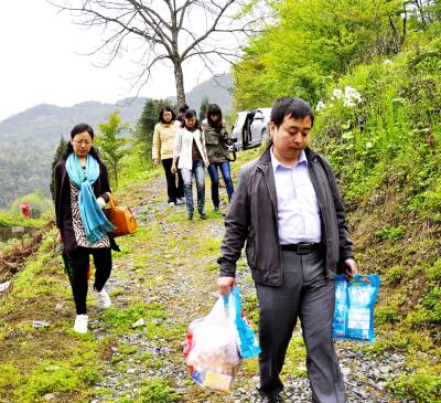 4月18日,在恩施市红土乡红土溪村,中国社会福利基金会授渔基金代表正在上门访问贫困学生罗双梅家庭。