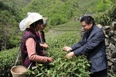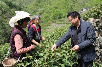 果茶专家进村来(钱芹 摄) 4月17日,丹江口市职业技术学校副校长周祎在驻点村——武当口村集体茶园指导茶农采摘春茶。当日,该校“三万”工作队一行5人进村入户,征求群众对对学校工作的意见建议,得知有许多村民在村集体茶园采茶,在大学主攻果茶专业的周祎就来到茶园指导茶农采茶。本报视界网 钱芹 摄 详细通联:丹江口职业技术学校办公室:钱芹 邮政:442708 手机:13477990812
