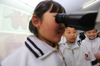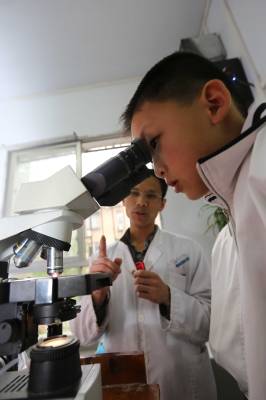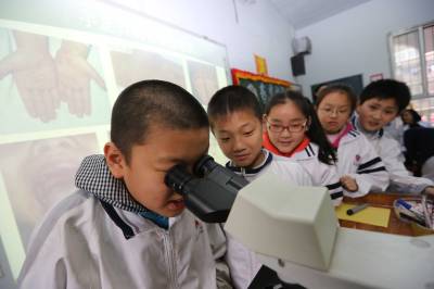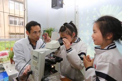 4月16日,襄阳市米公小学邀请襄阳市第一人民医院医生走进课堂,小学生们通过观察显微镜下放大数百倍的对有害人体的细菌和微生物标本,了解疾病预防病知识,减少春季疾病的发生。